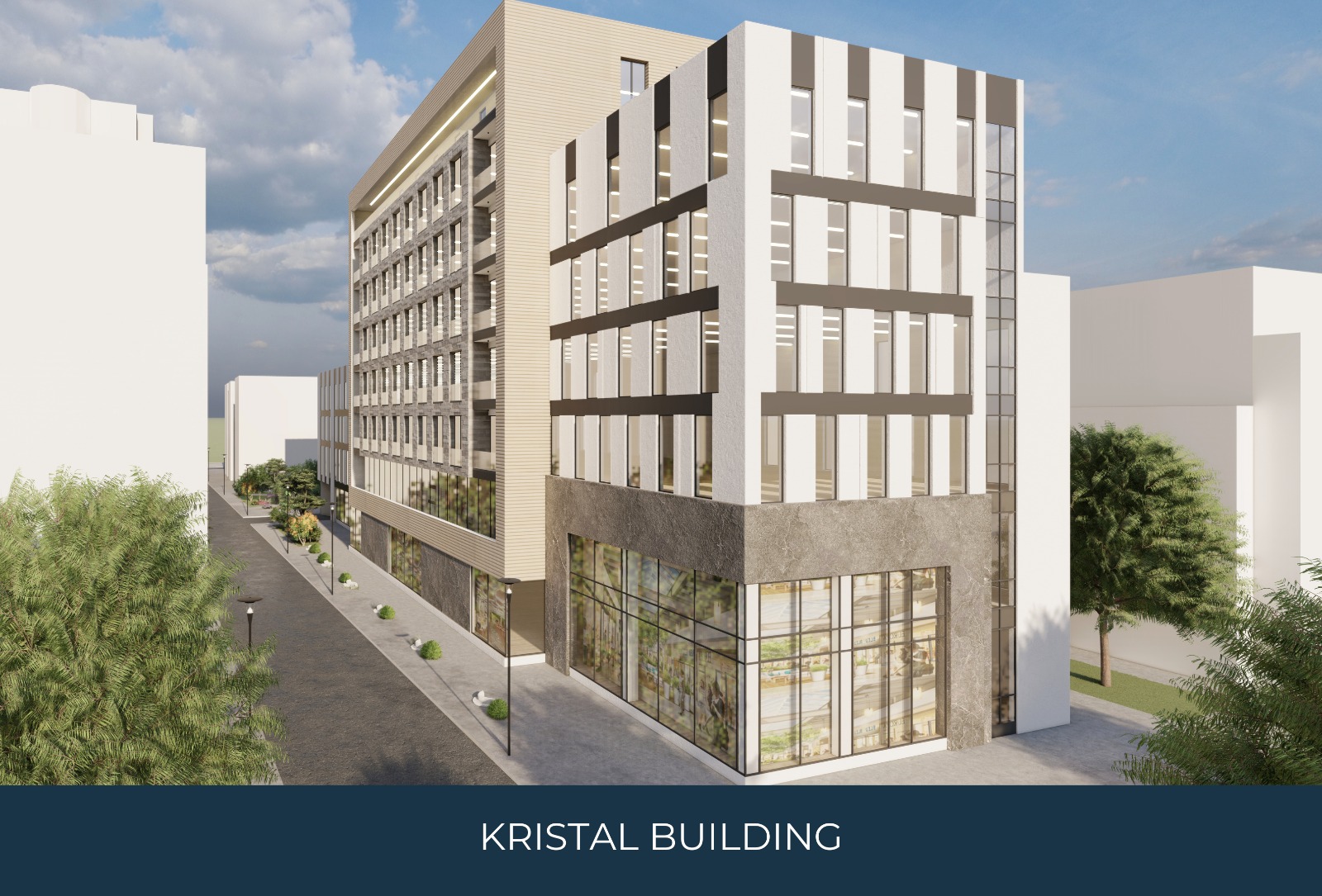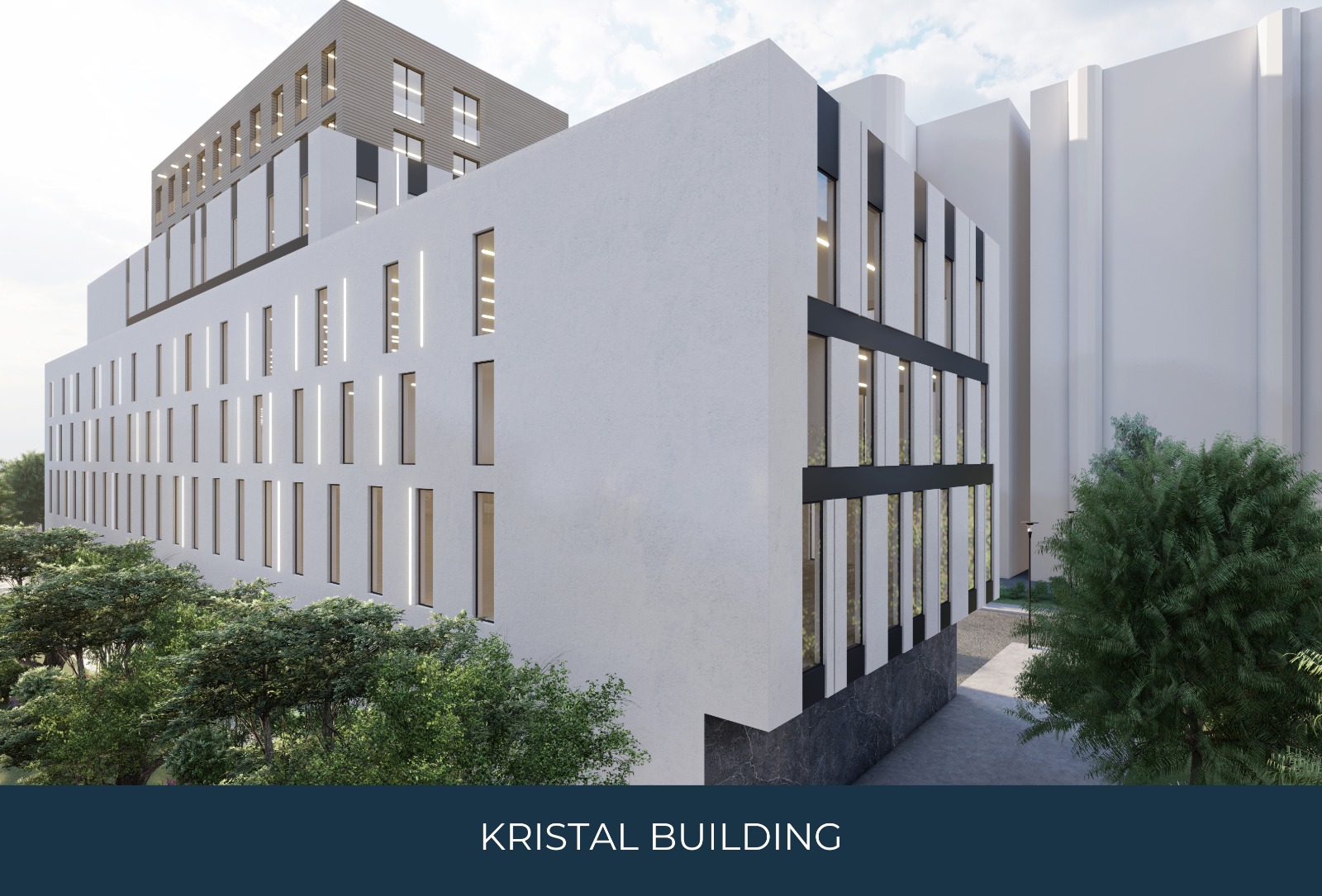The development includes 7,000 m² of above-ground construction and 4,000 m² underground. It features two dedicated parking levels (-1 and -2), ensuring secure and sufficient capacity for occupants and visitors. Overall, Kristal Building combines strategic location, thoughtful design, and practical infrastructure to meet high contemporary standards.